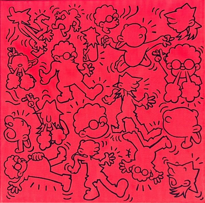 作品展のメインビジュアルとして描き上げた作品で、Keith Haringと これまでの自身の過去作をサンプリングしたコラージュ作品となっております。