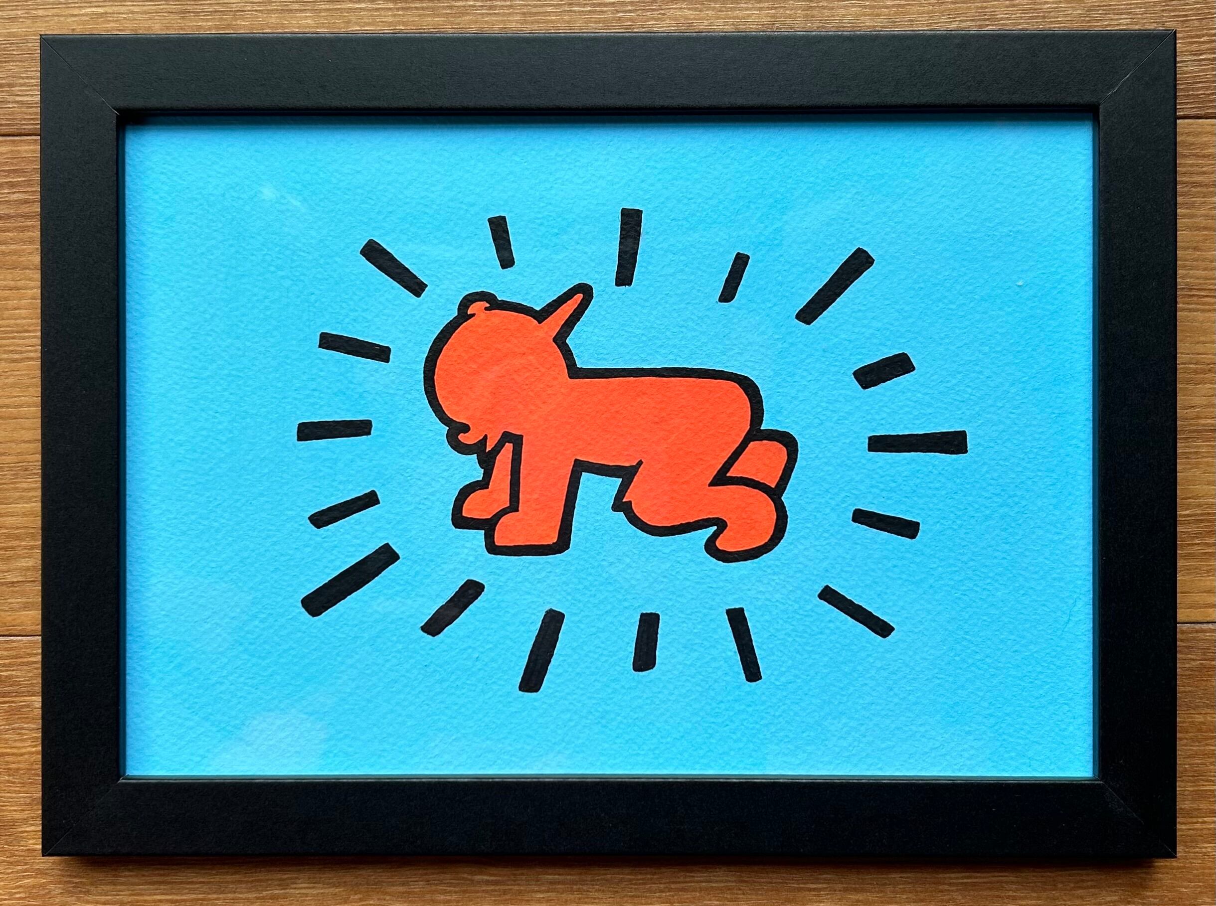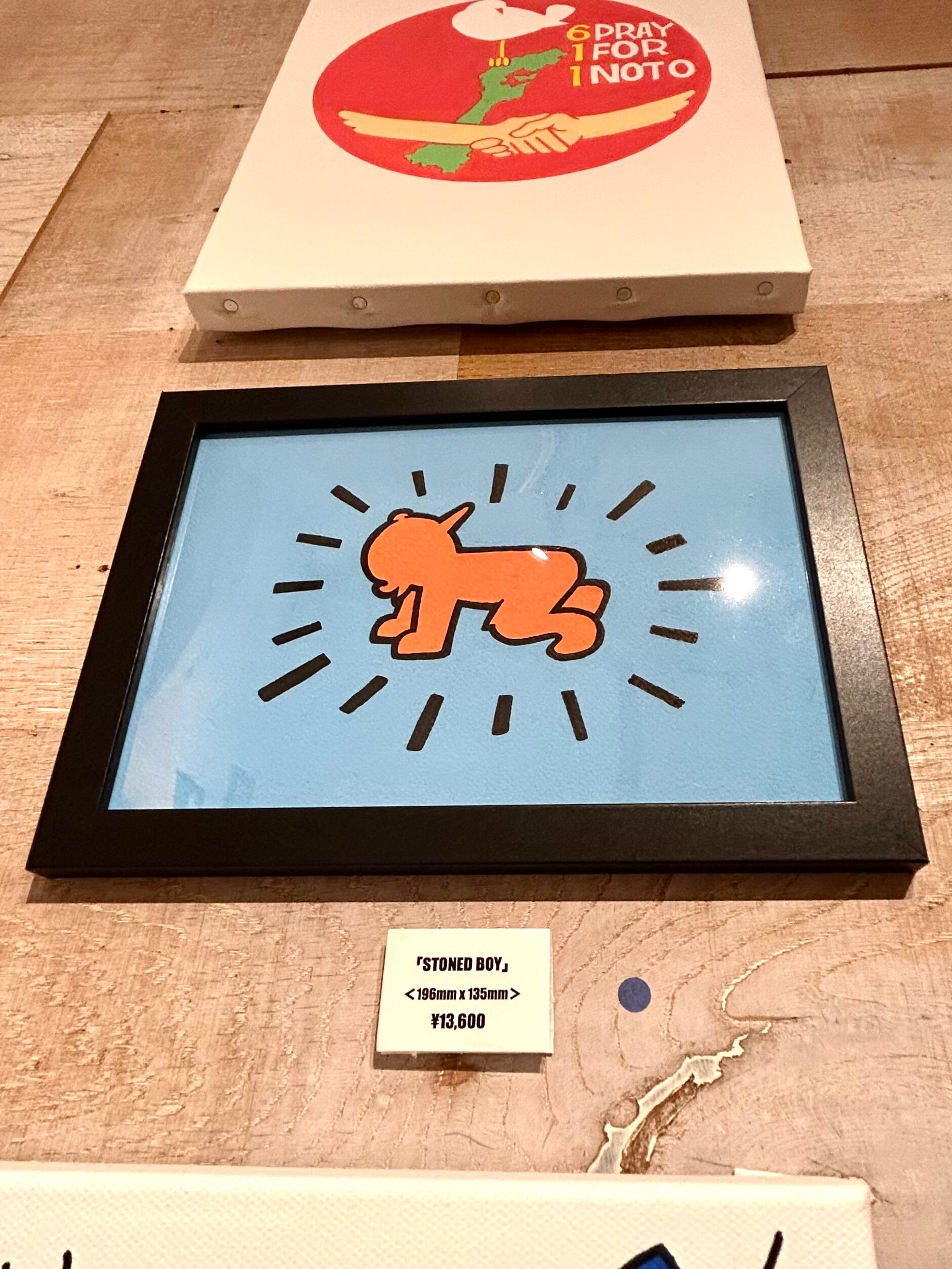 Keith Haringの代表作「Radiant Baby」をボクのアイコンである3バカでサンプリングしてドンギマってSTONEDしている状態を表現した作品となっております。