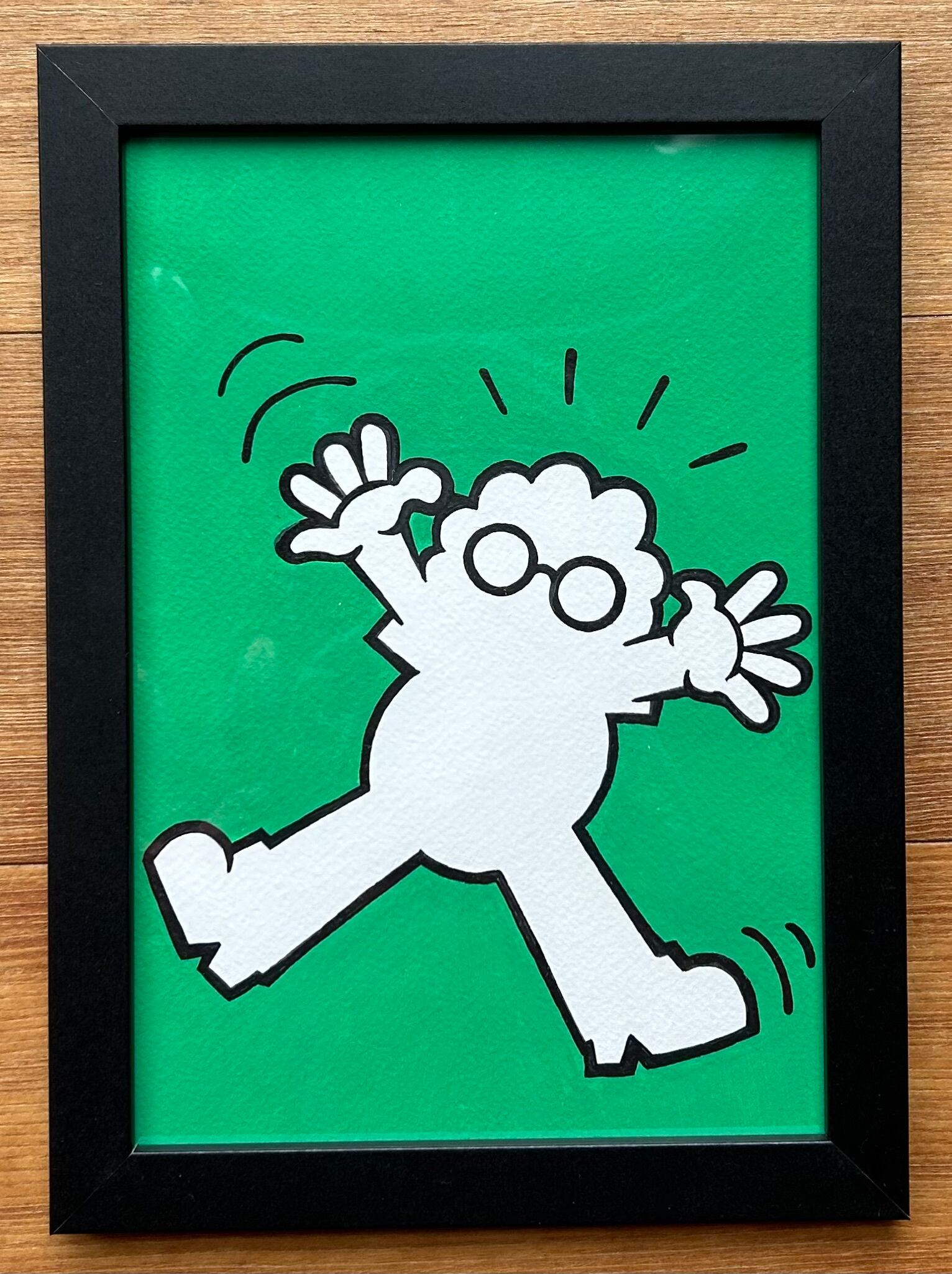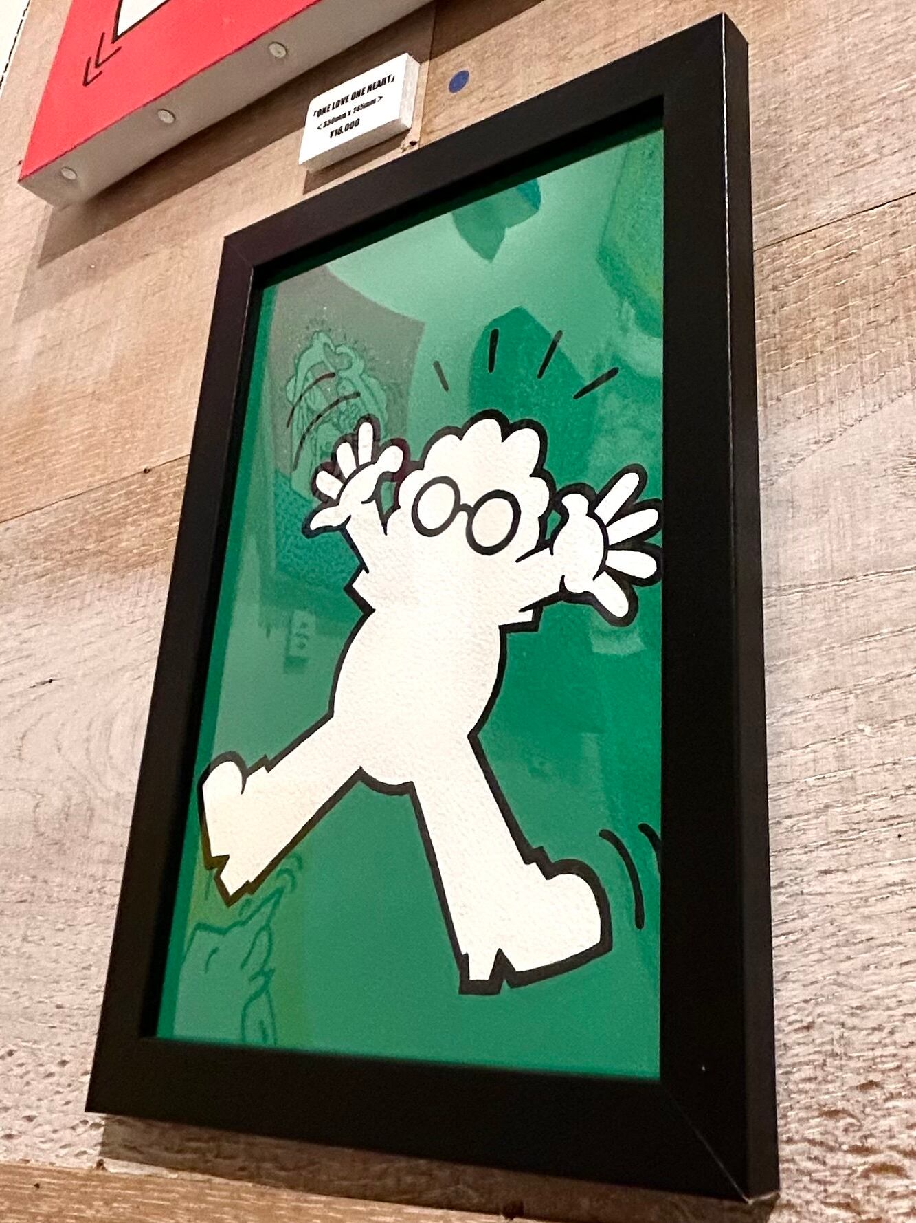 Keith Haringへのオマージュでボクのアイコンである3バカでサンプリングしてドンギマってSTONEDしている状態を表現した作品となっております。(額装済)
