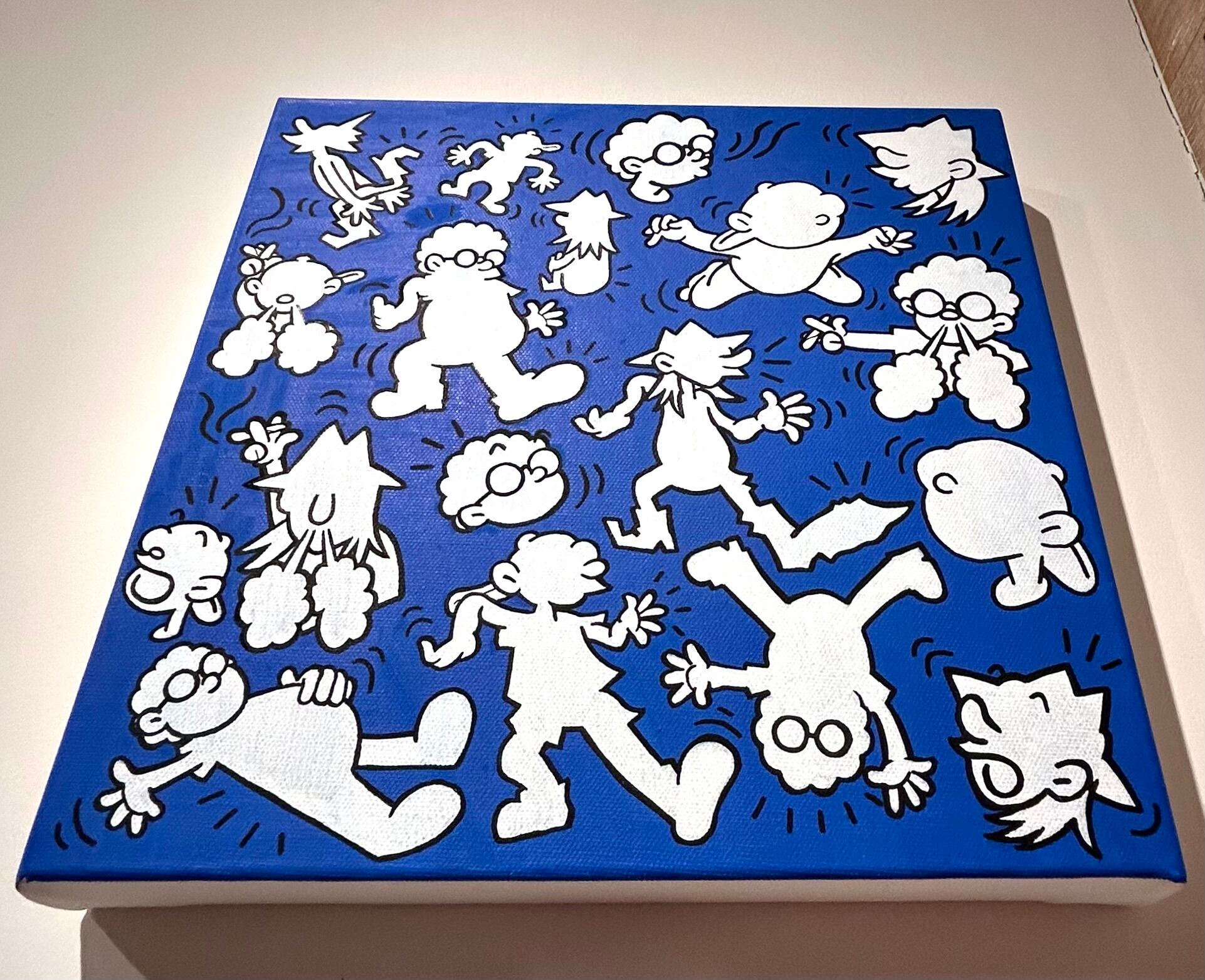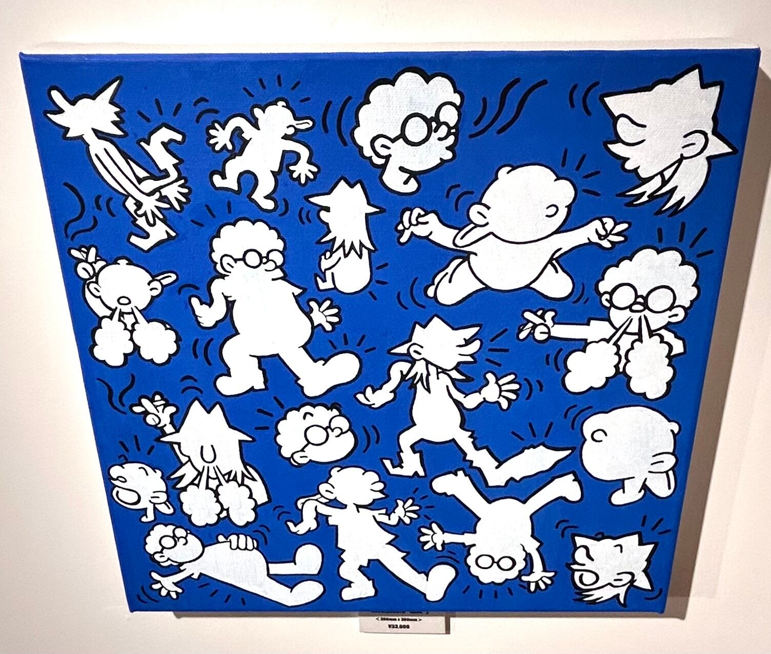 作品展のメインビジュアルとして描き上げた作品で、Keith Haringと これまでの自身の過去作をサンプリングしたコラージュ作品となっております。