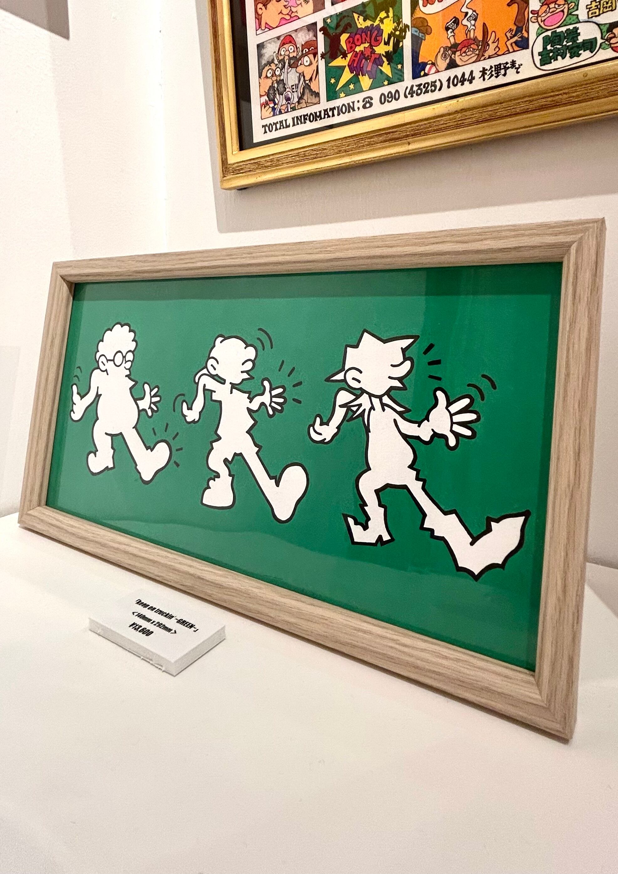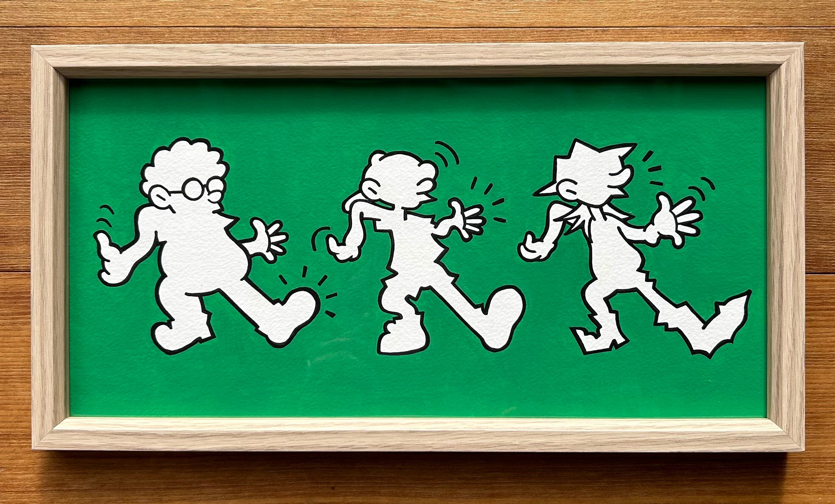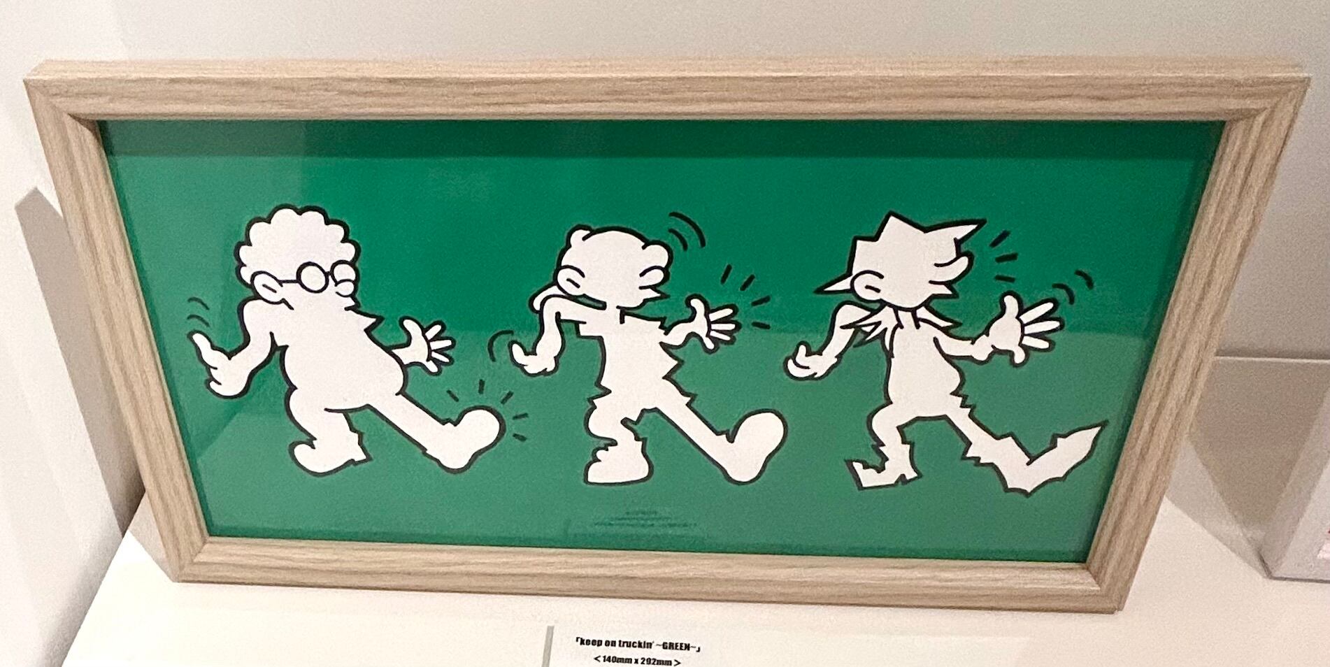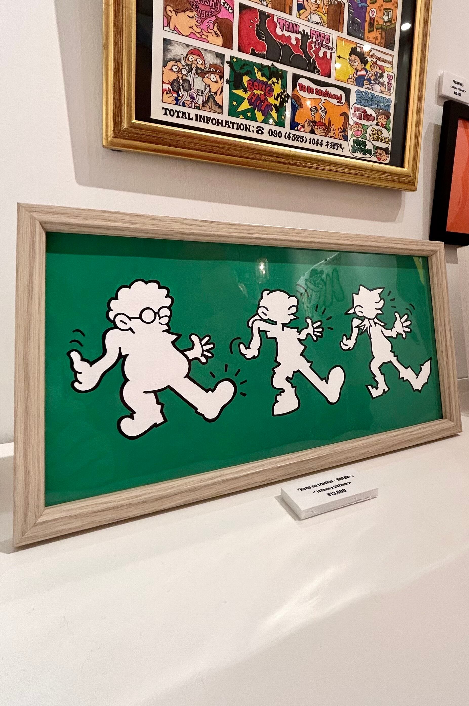 自身のアイコンである3バカキャラクターの「Keep on Truckin'」のセルフサンプリング x Keith Haringのオマージュ作品です。(額装込)