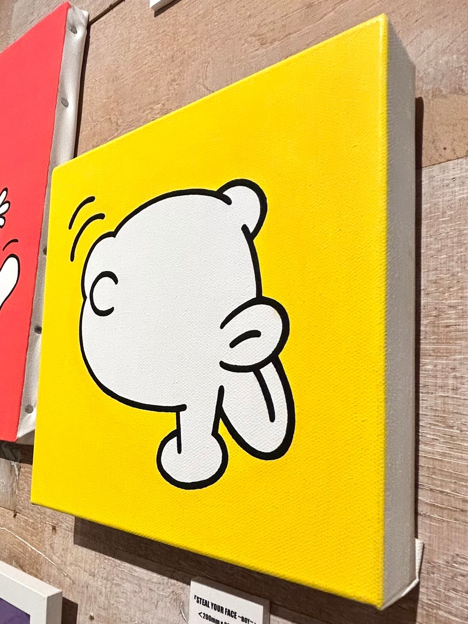 3バカキャラをそれぞれKeith Haringテイストに描きあげた作品で、タイトルは敬愛する米バンドGRATEFUL DEADのアイコン「Steal Your Face」※凍てついた肖像 から。