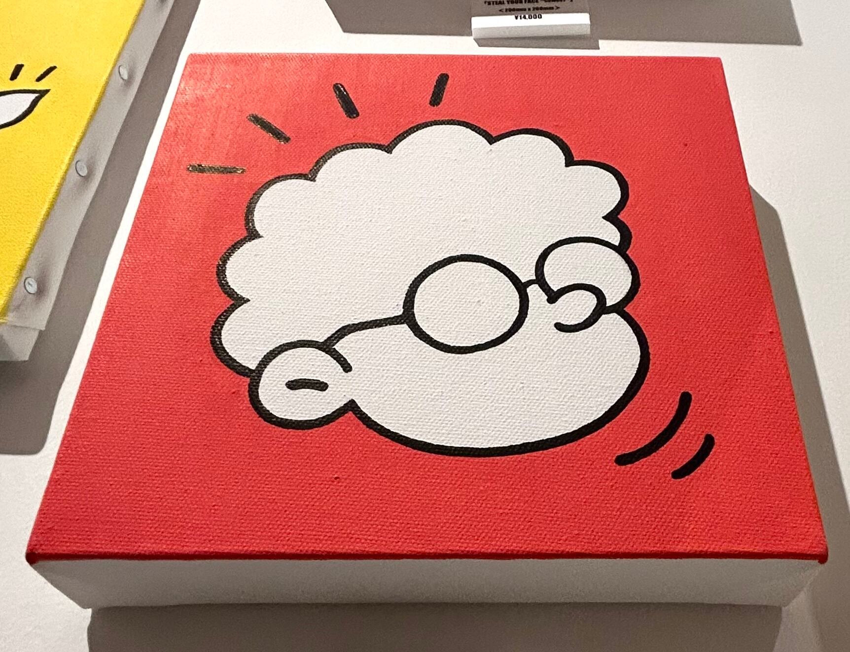 3バカキャラをそれぞれKeith Haringテイストに描きあげた作品で、タイトルは敬愛する米バンドGRATEFUL DEADのアイコン「Steal Your Face」※凍てついた肖像 から。