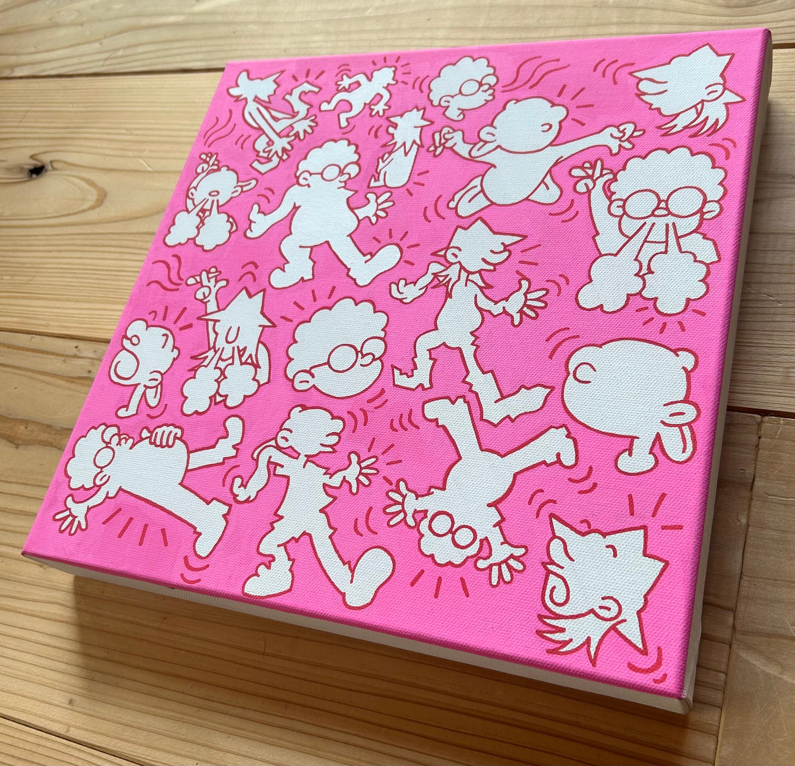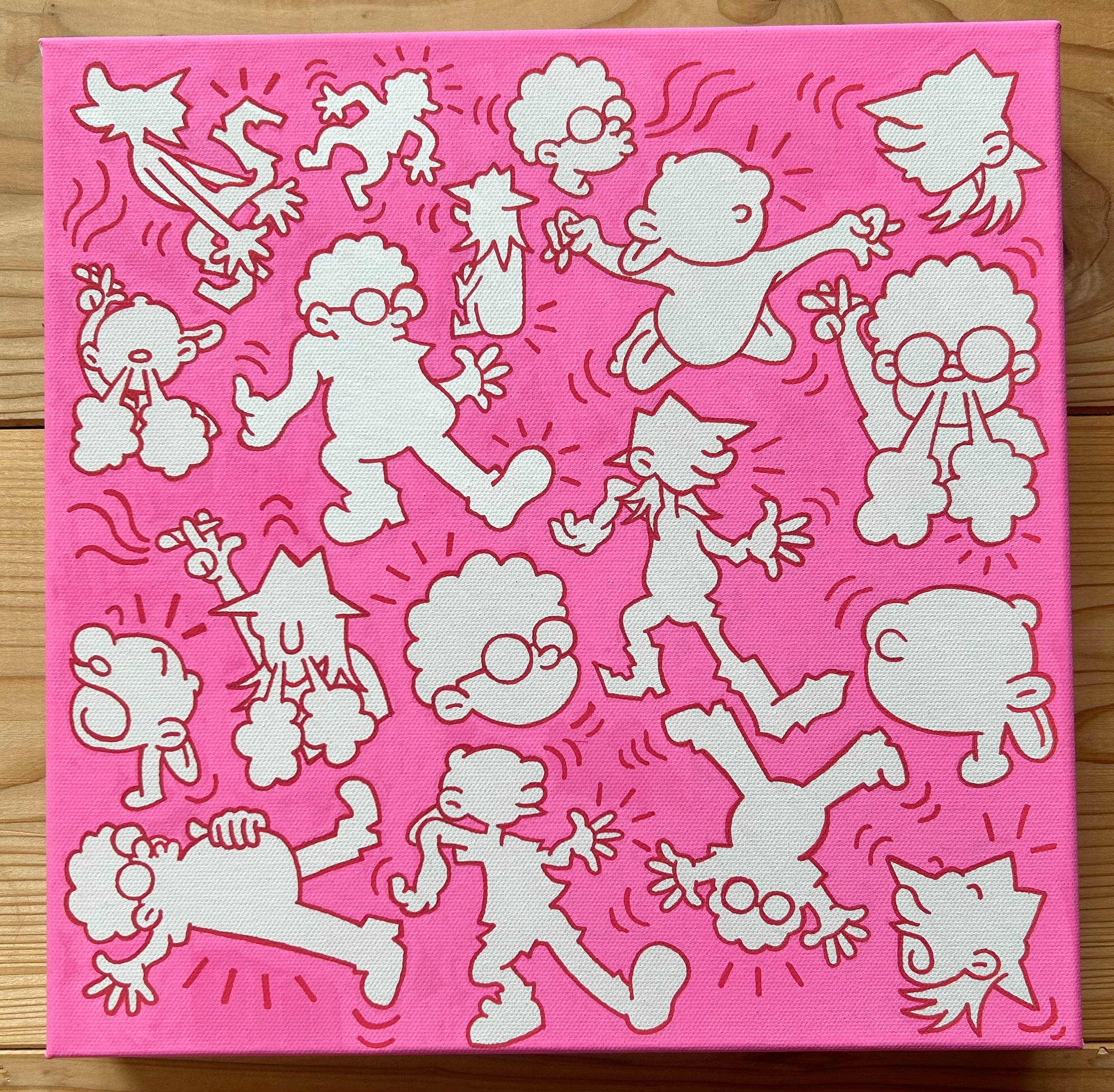 作品展のメインビジュアルとして描き上げた作品で、Keith Haringと これまでの自身の過去作をサンプリングしたコラージュ作品となっております。