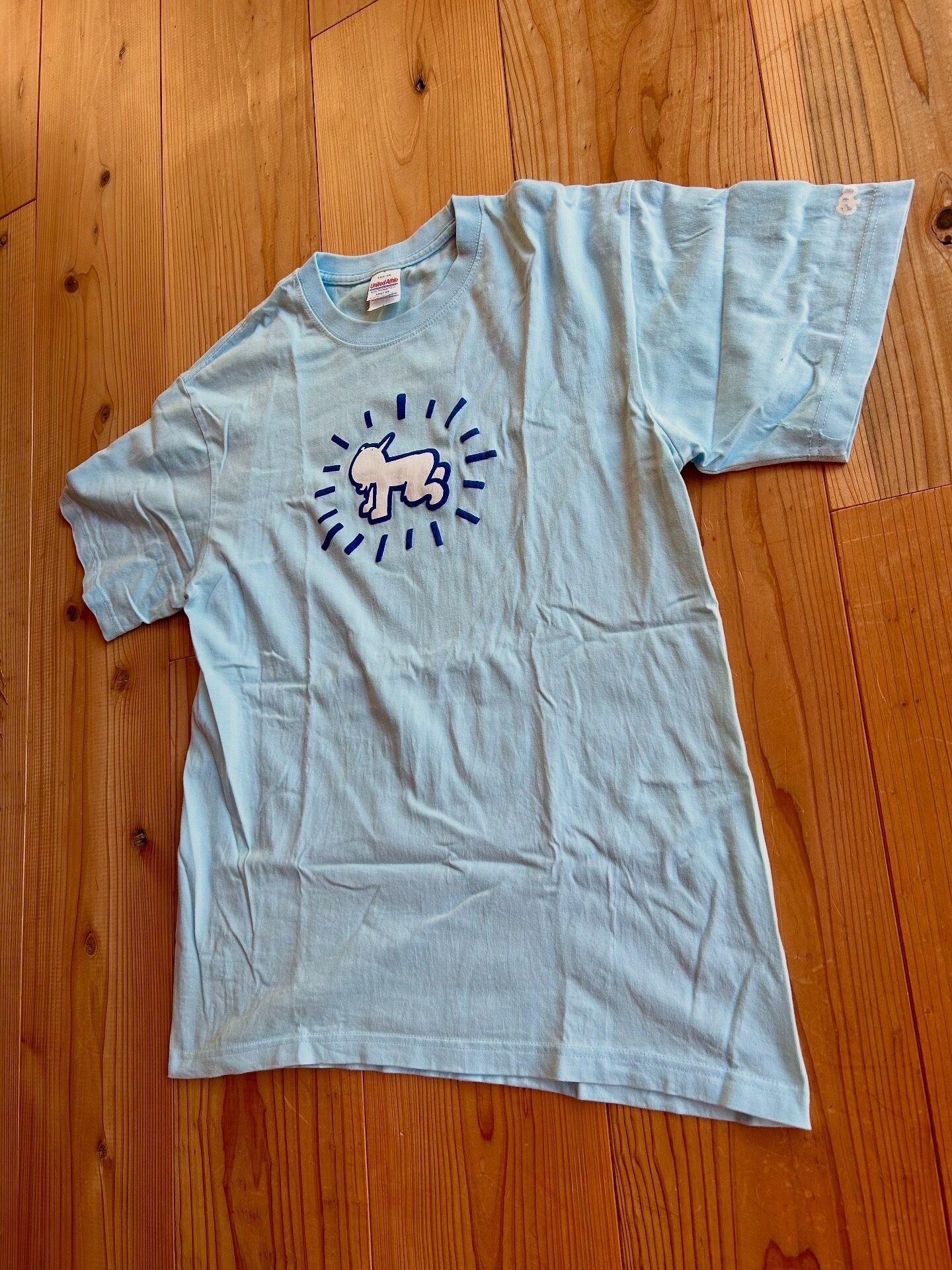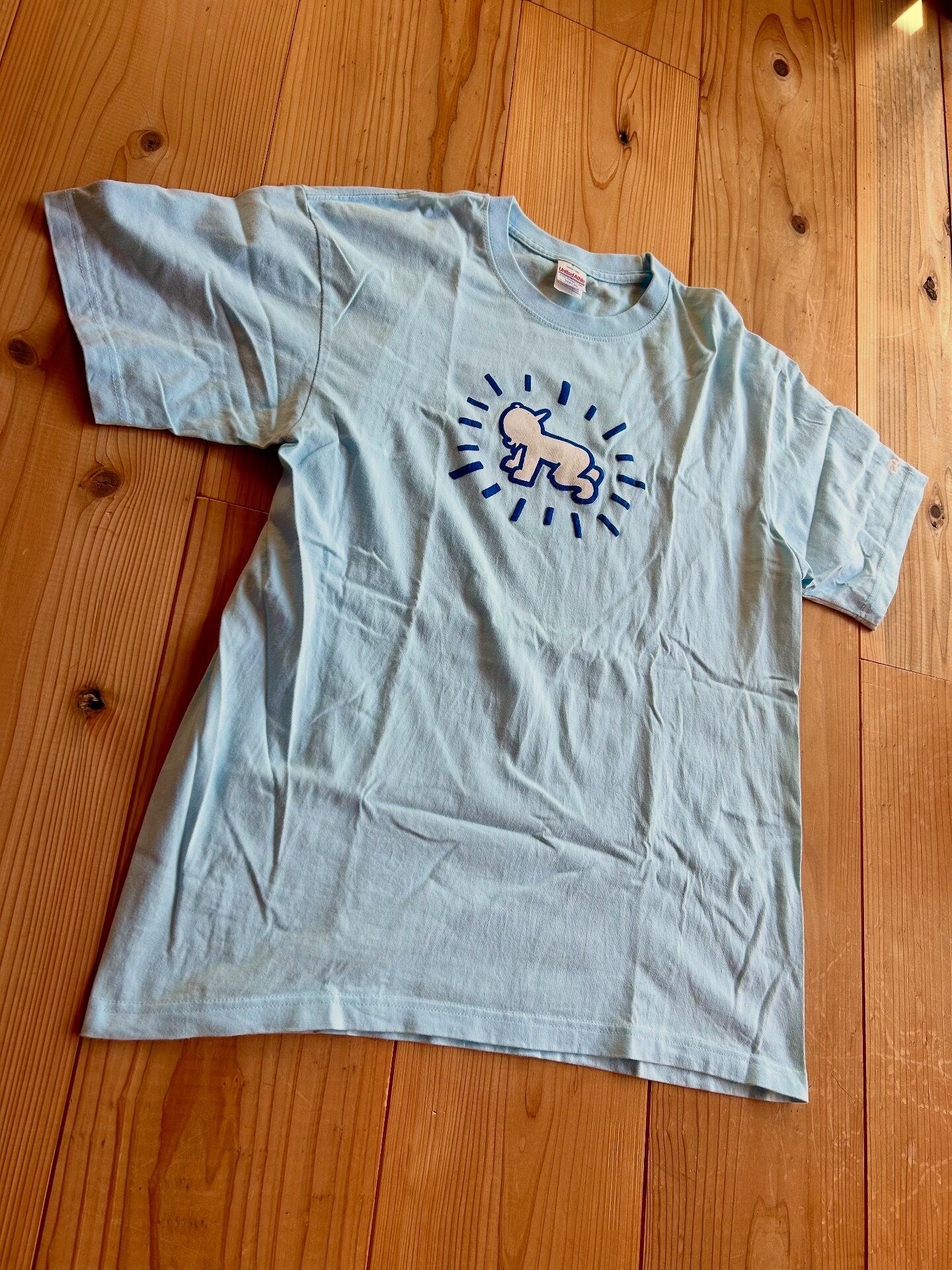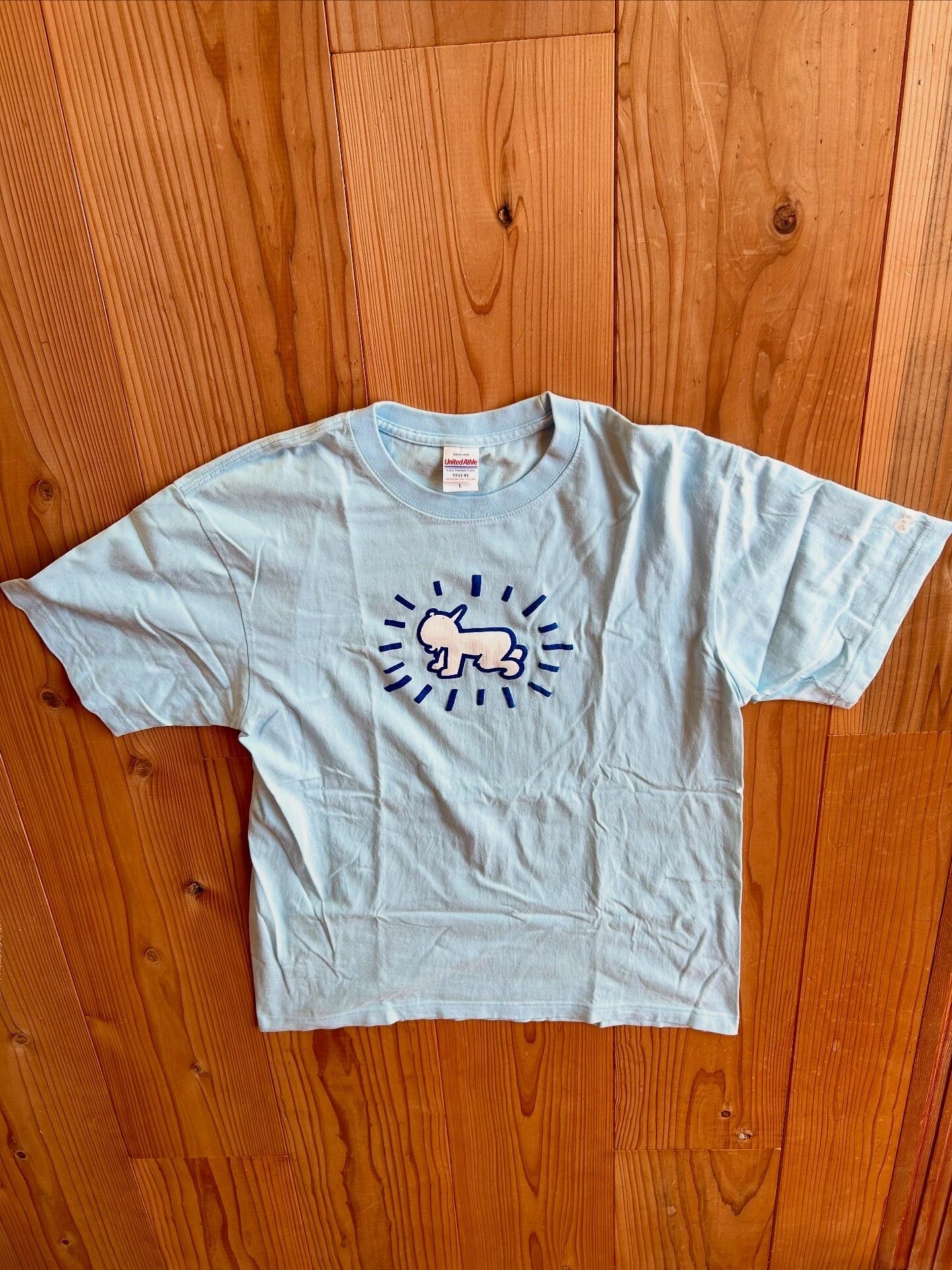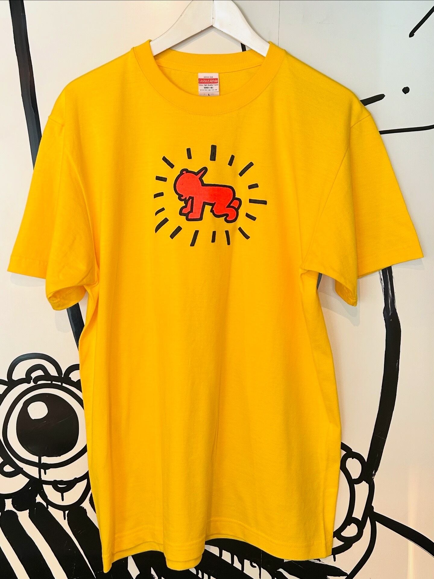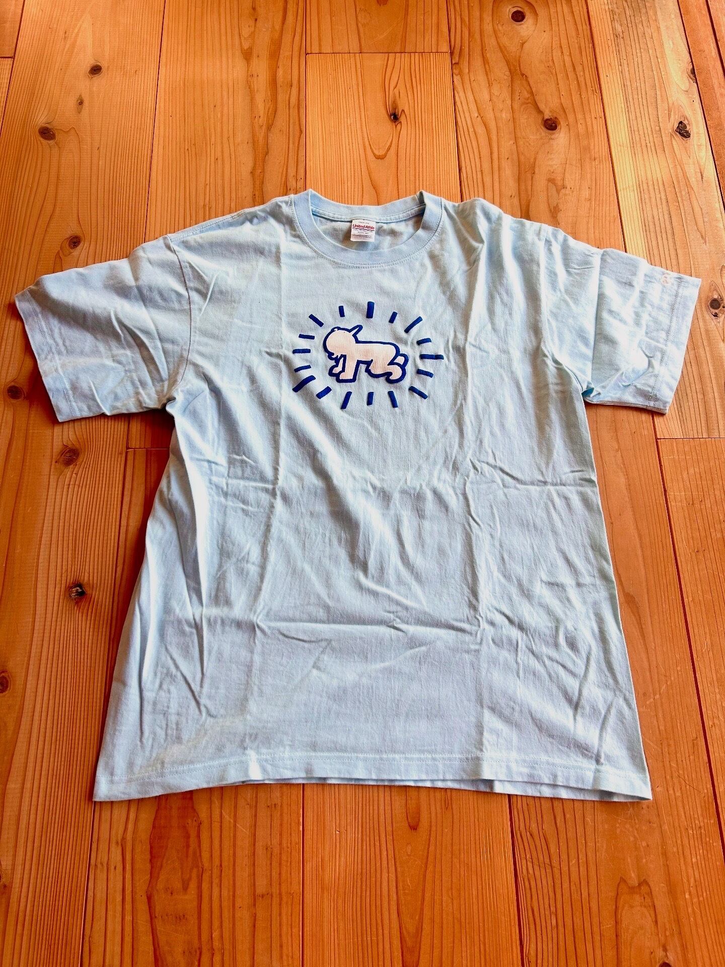 イラスト作品展 vol.3「asobigocoro」の際に描いた作品で、キース・ヘリング の作品「Radiant Baby」をボクのアイコンである3バカでサンプリングしてドンギマってSTONEDしている状態を表現したオマージュ作品「STONED BOY」を前面にプリント(線画部分は発泡)しています。