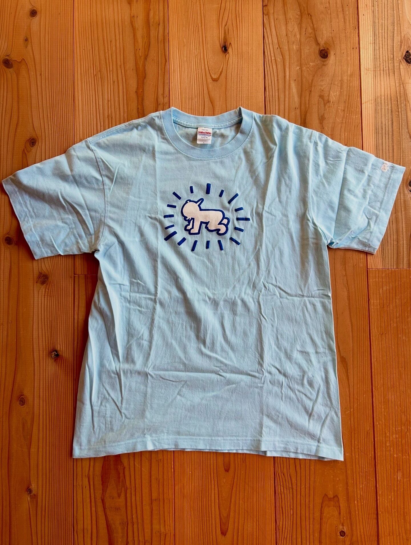 イラスト作品展 vol.4「冒険の描」にて販売する物販商品で、会場「epochz」 のオーナーが1枚1枚手刷りでシルクスクリーンプリントしたTシャツです。