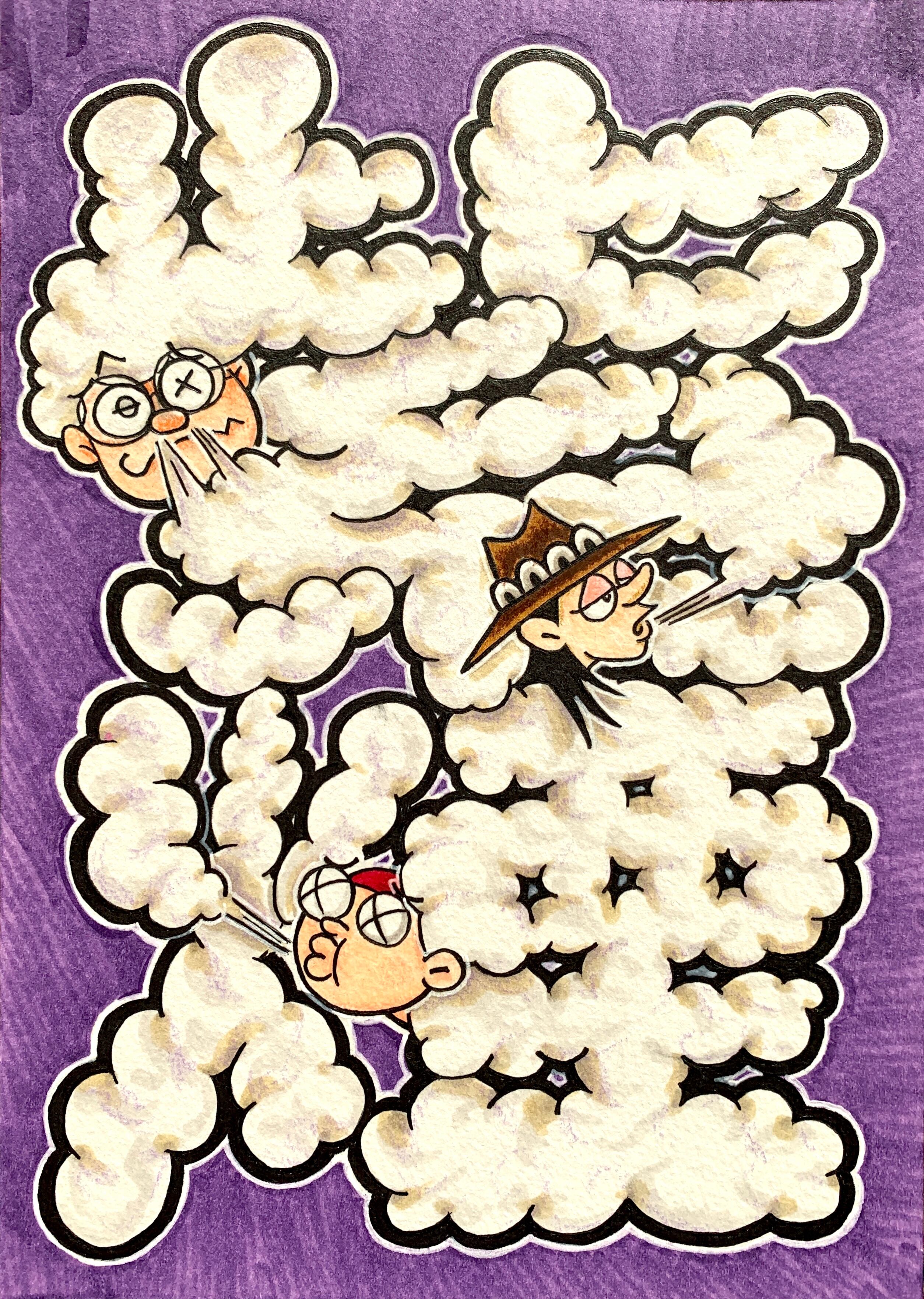 本作は、3人がDOPEしながら燻らした煙文字でそんな“紫煙”というワードを描いてみました。
