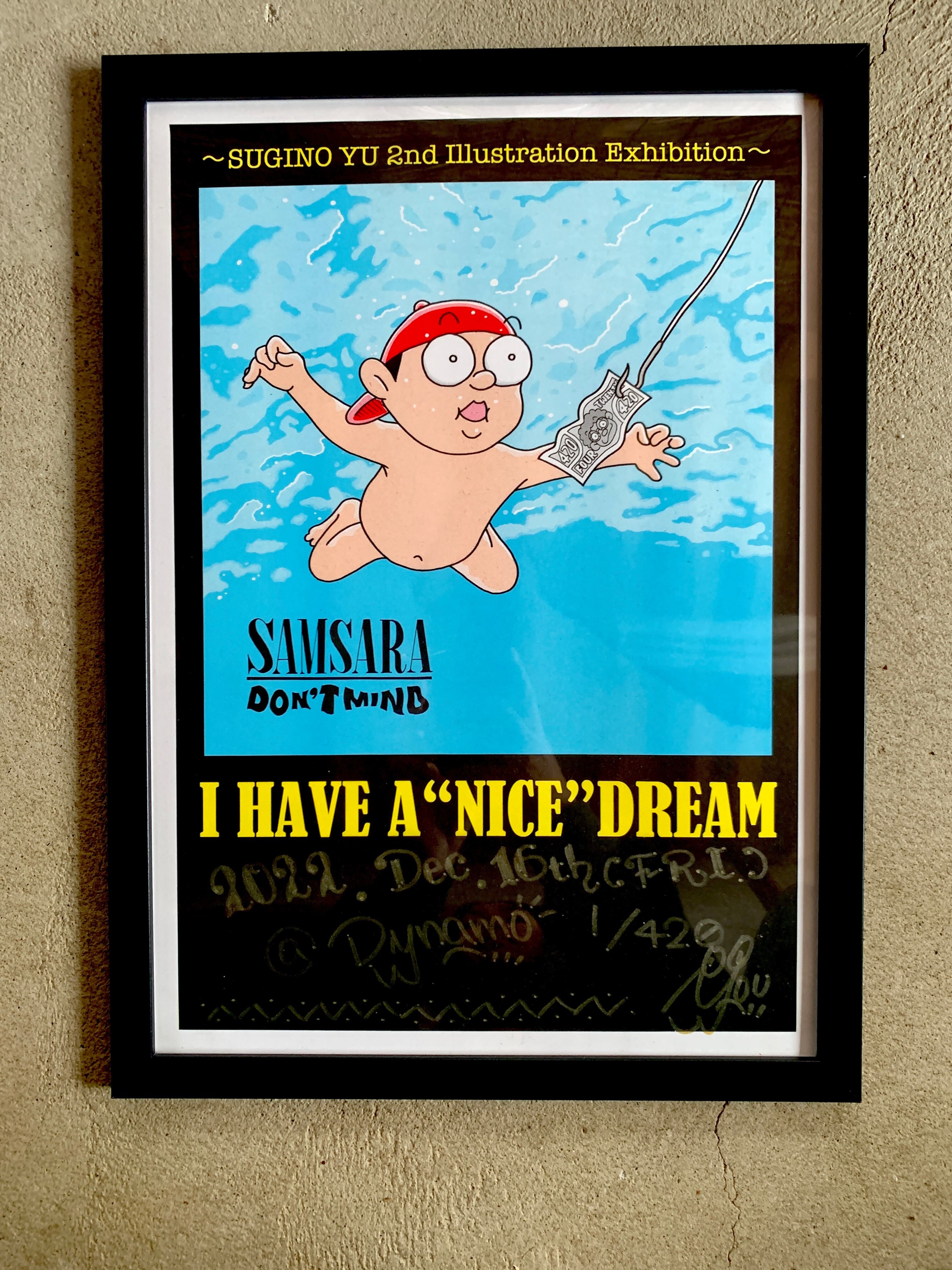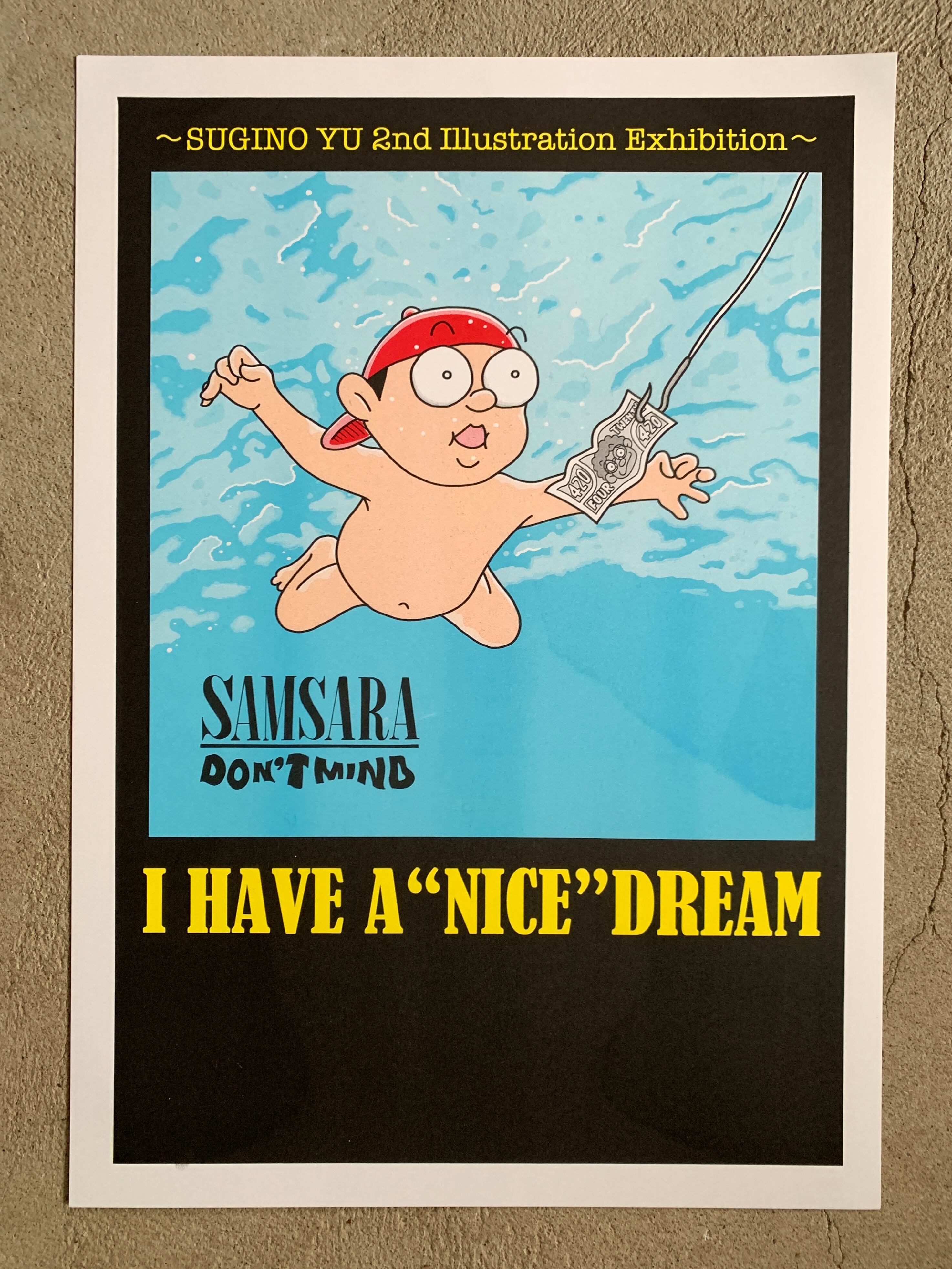 2022年12月に開催した〜SUGINO YU 2nd Illustration Exhibition〜「I HAVE A “NICE” DREAM」のイメージデザインとして描きおろした作品「SAMSARA / DON'T MIND」をあらたにデジタルで書き起こしプリントポスターとしてリリース。