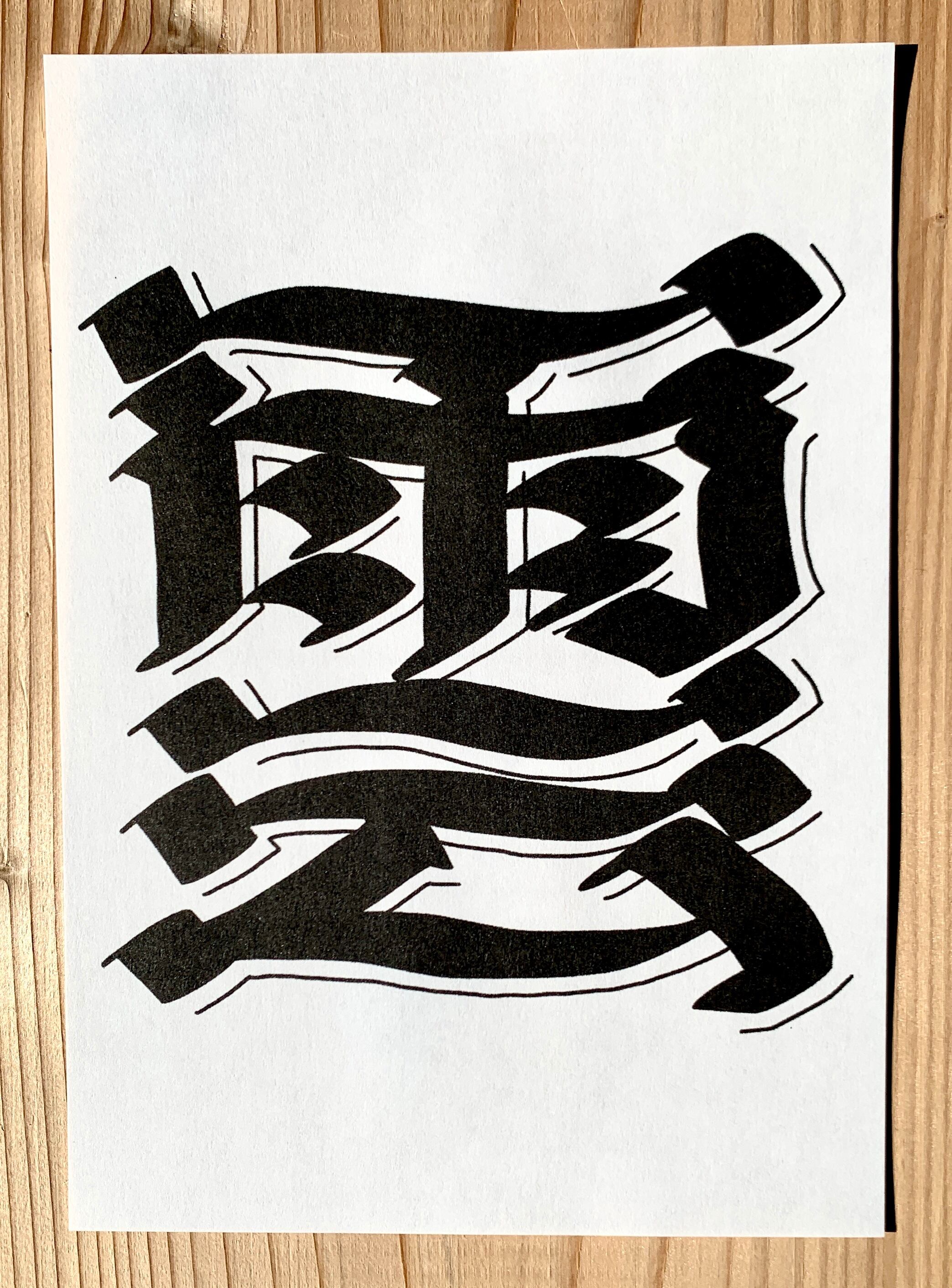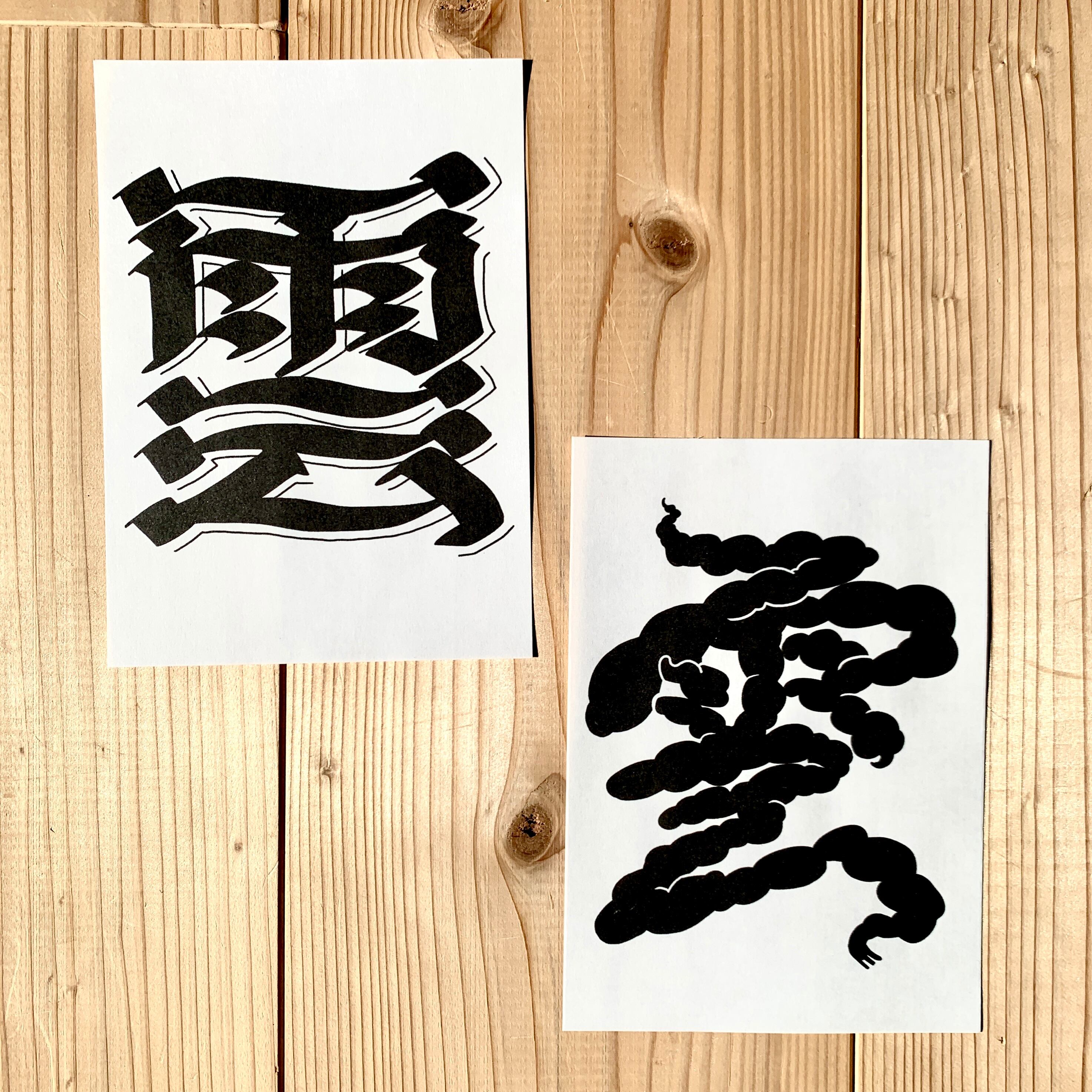 雲を模したケムリ文字とカリグラフィー文字の2種 描き上げました。